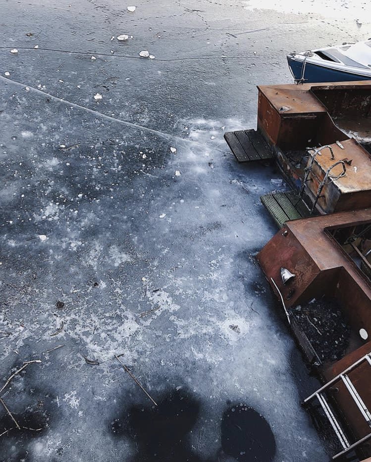 Ещё чуть-чуть зимнего Берлина. На этой лодке выживала эту зиму Коза из группы Война со своими козлятами. pic.twitter.com/nT4mPJ0h3m