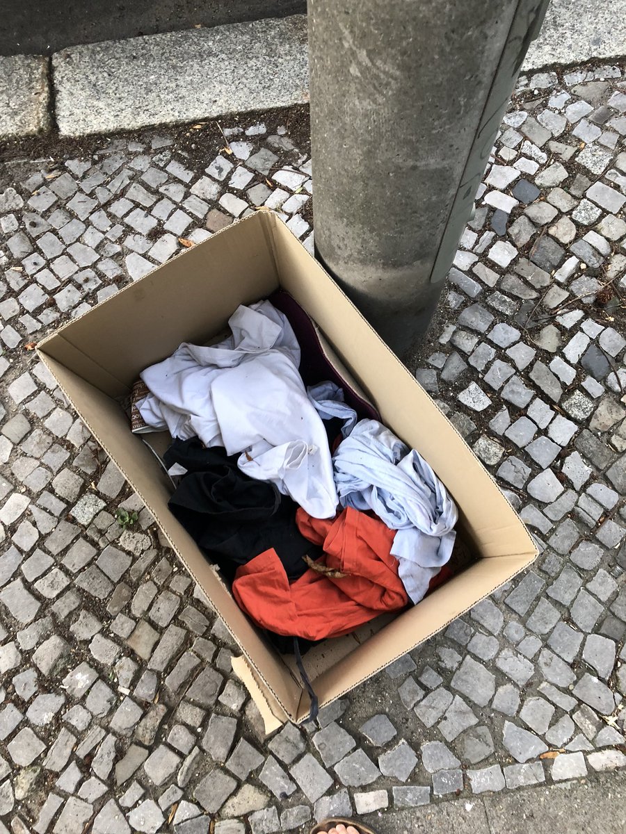 Люди выставляют у подъездов ненужные вещи с запиской «zu verschenken» (в подарок). Иногда выставляют еду. Вообще очень развит фуд-шеринг. Набираешь в кафе и магазинах бесплатно еду, которую все равно бы выкинули. twitter.com/GetmanIlia/sta…